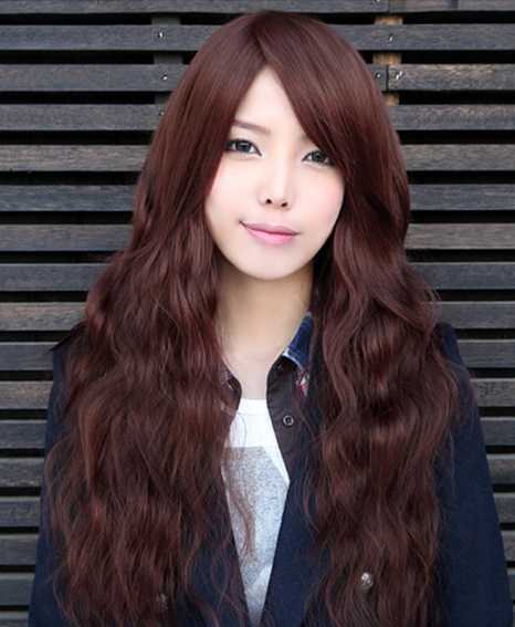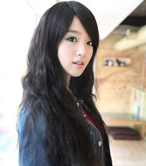韩国斜刘海蓬松蛋卷发,斜刘海添了甜美气息,长长的蛋卷发,甜美安静,还有点非主流的味道哦,黑色和棕色演绎着不同的风格,减龄效果倍捧。