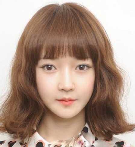 齐刘海+齐肩的蛋卷发,超适合卖萌的,漂亮的脸蛋,精致的五官,怎么样都可爱,怎么看都美哦,即使不卖萌也超可爱了,惹人怜爱哦。