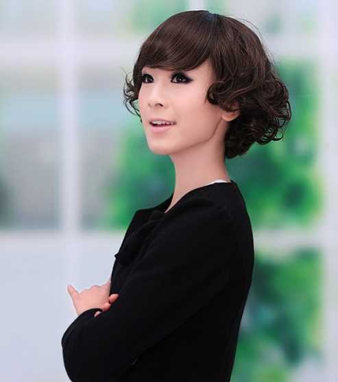 短短的蛋卷发,斜刘海,清爽又显气质,两颊凌乱小小的蛋卷发添了几分俏皮感,减龄效果也很捧哦,挺不错的一款蛋卷发。