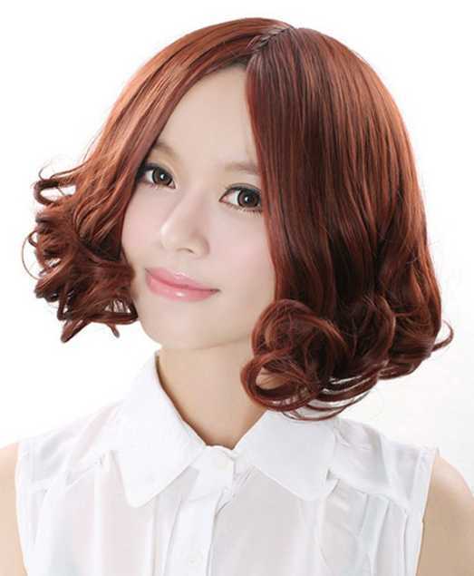 中分修饰脸型的效果超捧,而且也超显气质的,发梢处的蛋卷俏皮又可爱,酒红的发色,增添了女人味,甜美又有气质的一款蛋卷头。