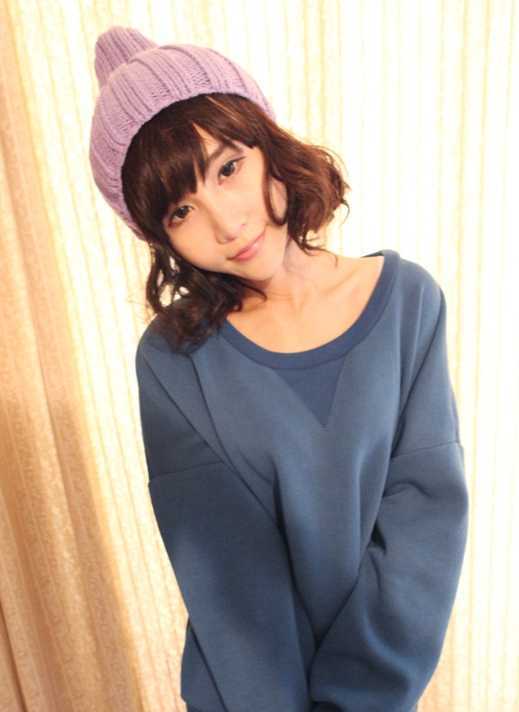 碎碎的刘海,棕红色的头发,搭上一顶针织帽子,添了几分乖巧可爱感。