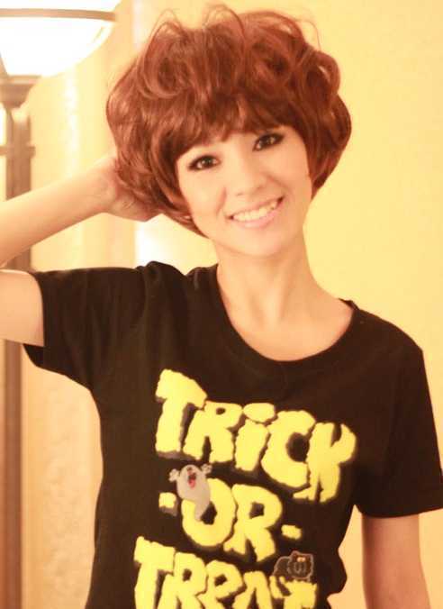 蓬松凌乱的短发丝,蛋卷,显得俏皮可爱,还带着点慵懒感,