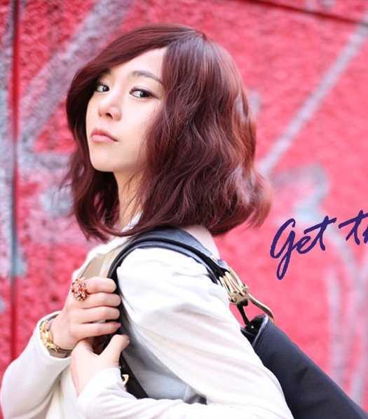 斜刘海添了甜美气息,酒红的发色,时尚又显肤色,