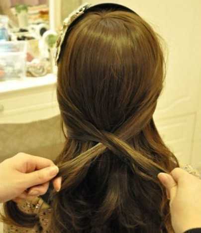 步骤二:然后两颊挑出来的头发相互交叉,向内绕,效果图所示。