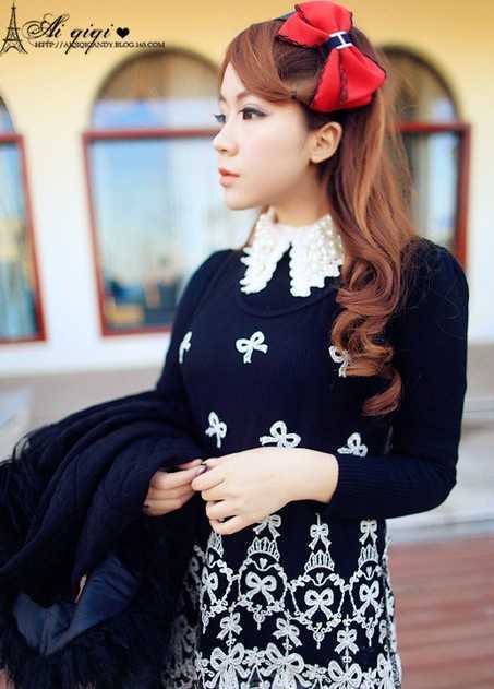 蜜糖棕发色衬托着相当时尚,卷卷的发尾搭在肩上很美!在头上戴上一个蝴蝶发饰,增添了甜美感,早春时尚的长卷发哦!