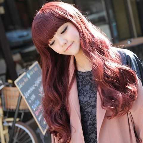 酒红色的发色衬托着超时尚,而且很显白皙肤色,齐刘海的打造更是甜美范大增,卷卷的发尾搭在肩上,增添了唯美感,减龄又时尚,2013春季最受欢迎呢!