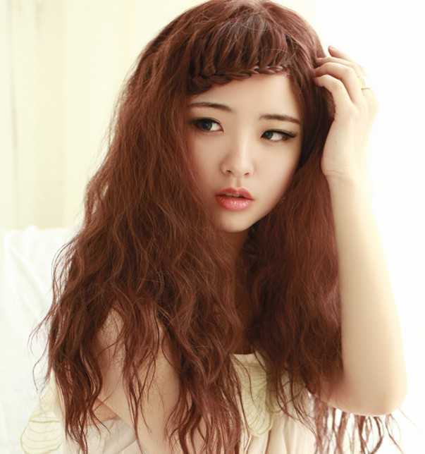 前面的刘海DIY起来,编成发辫形状,很特别,细卷的爆炸性玉米烫卷发,潮流十足,有着十分好的瘦脸效果。很赞!