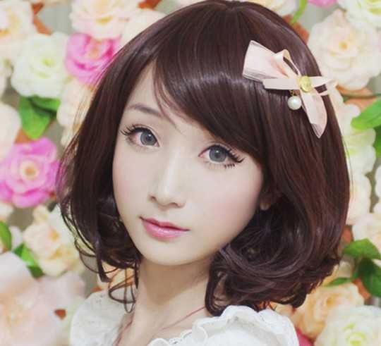 前面的刘海往后扎起来,用蝴蝶结夹住,可爱、甜美有木有?内扣的短发尾,修饰脸型很佳!在镜头前,卖萌一下,很赞!最新的女生短卷发!