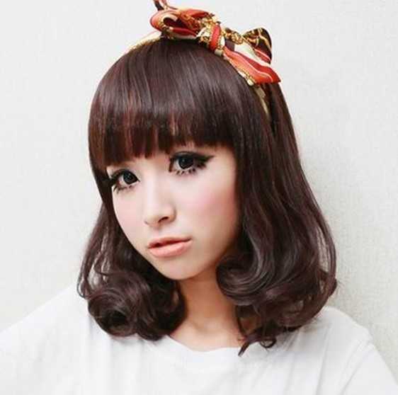 这款2013最为流行的短卷发,运用发尾内扣的设计,不仅成功打造出一张精致的小脸,还洋溢出青春甜美气息,棕红发色搭配可爱的发带时尚又不失小女生魅力,