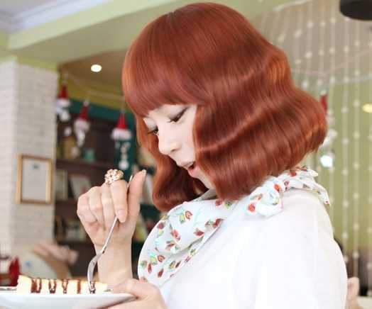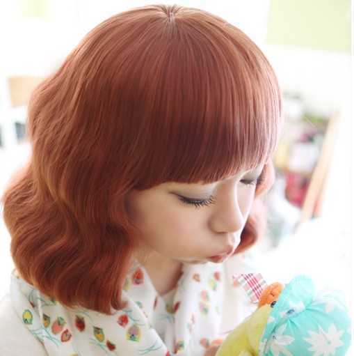 过目不忘的棕红发色带出女生俏皮搞怪的表情,柔顺的发质中结合蛋卷头打破了单调的呆板,变得青春活力起来,超萌!
