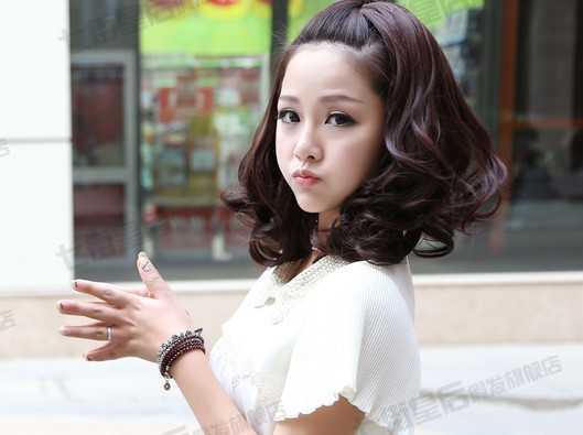 这款短卷发给人超卡哇伊的感觉,齐刘海设计让女生看起来更具可爱气质,再加上动感立体的短卷发,无疑散发出俏皮活力气息,搭配可爱的服装,韩式洋娃娃的感觉自然洋溢出来了!