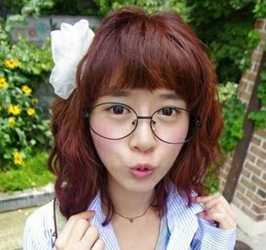 耀眼的棕红色染发,没有过于的夸张反而让这款短卷发中呈现最美感,蓬松散乱的卷发,与女生搞怪表情显得十分的协调,搭配特别飞黑色眼镜框可爱萝莉范超强!