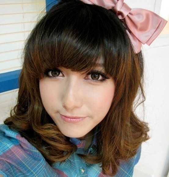 纯真甜美的小女生,一款俏皮的短卷发型,让那淑女恬静的气质感尽情演绎着,显得有些微斜厚感的刘海,搭配粉色蝴蝶结的装饰,展现出一个洋气可爱的感觉。