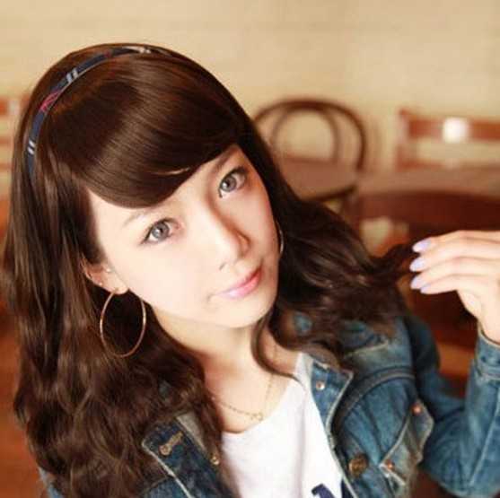 中长的蛋卷头,微斜的刘海起到了很好的修颜功效,随意披肩的蛋卷发把那种知性美态尽情演绎出来,简约发箍的点缀下,在2013年轻松打造出甜美小淑女的感觉。