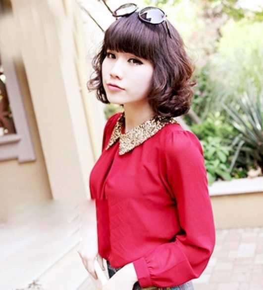 蓬松的短卷发,凸显完美的优雅气质,内扣弧度的齐刘海既起到减龄又十分修颜,在红色衬衫与复古墨镜的装扮下,呈现出十足的时尚御姐风范,相当吸引眼球的女生发型搭配!