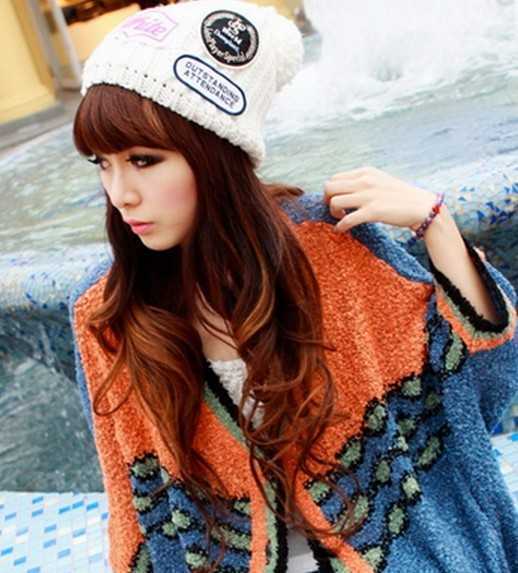 小韩系风的大波浪卷发型,线条分明的卷发丝,尽显女性优雅时尚感,再剪上一个遮眉的齐刘海,一顶毛线帽的包裹下,卖萌又可爱。