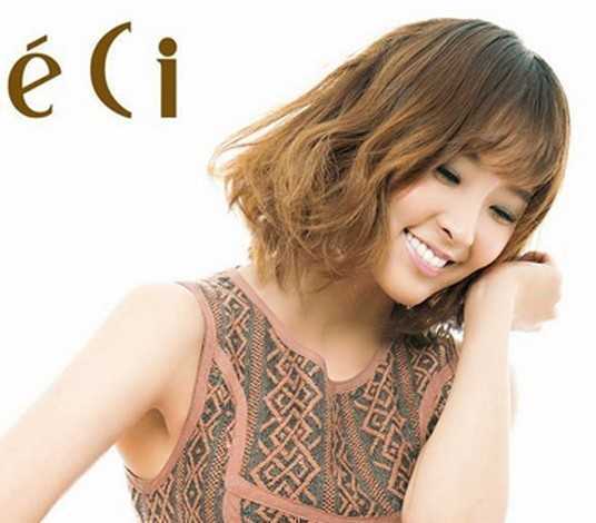 大大咧咧的一个笑容,一款中短的卷发造型,给人倍感舒适自然感觉,稍微有点斜的齐刘海也是可爱的表现,蓬松的卷烫发包裹着小脸效果,优雅而甜美!