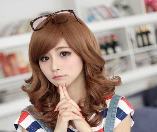 看起来十分可爱怜惜的女生,一款中长的蛋卷头发型搭配下,却是显得几乎完美呢!时尚的棕黄色染发更是时尚亮丽,头顶的眼镜框装饰,又不失清新小文艺气息哦!