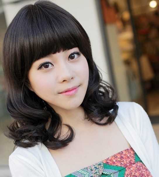 较长的一款短卷发型,洋溢着浓烈的甜美韩国气息,动感的内卷发尾,倍增十足的俏皮造型感,整齐的刘海下,清秀的五官轮廓尽显其中,同样也具修颜效果哦!