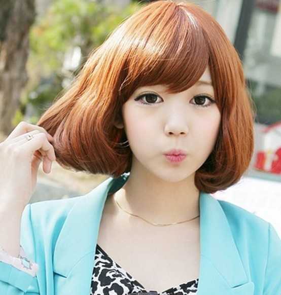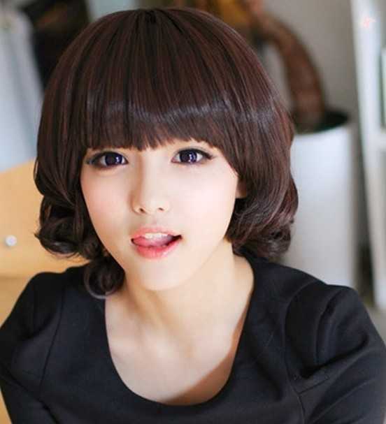 可爱的小女生,顺滑的韩国短卷发型,看起来有种乖巧恬静的感觉,深棕色染发既是清新又显得小优雅,整齐的刘海也瞬间带动萌动的眼睛,十分可爱哟!