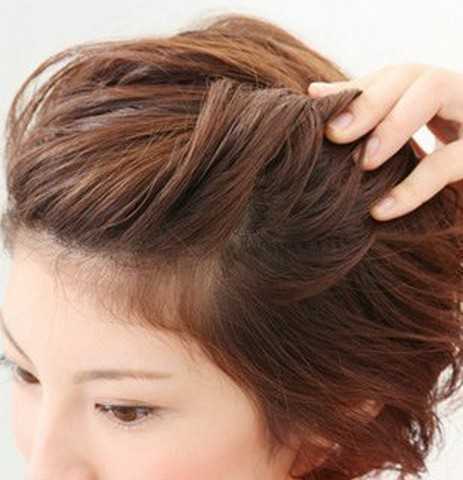 2、用手把额前头发往后拧转起来,这样是为了营造出蓬松感哦!