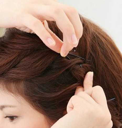 3、使用小发卡固定好拧转的头发,如图所示。
