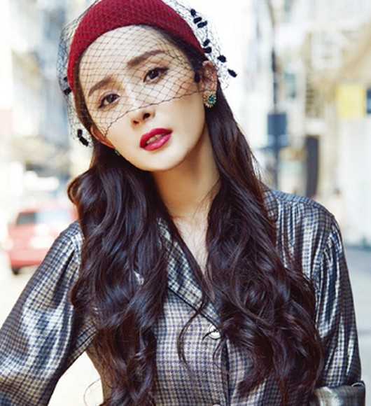 2014年里超大热的一款复古系长卷发造型,动感的卷发安静垂放在肩上,冷艳半掩于面纱和红唇的装扮下,又是冬季别样优雅女人味道。