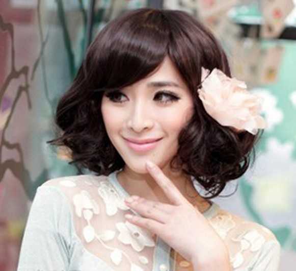 属于甜美系的蛋卷头烫发,蓬松的卷烫发衬托出完美的脸蛋,斜分的刘海下,装点上花朵发饰,甜美优雅气质更加提升了。