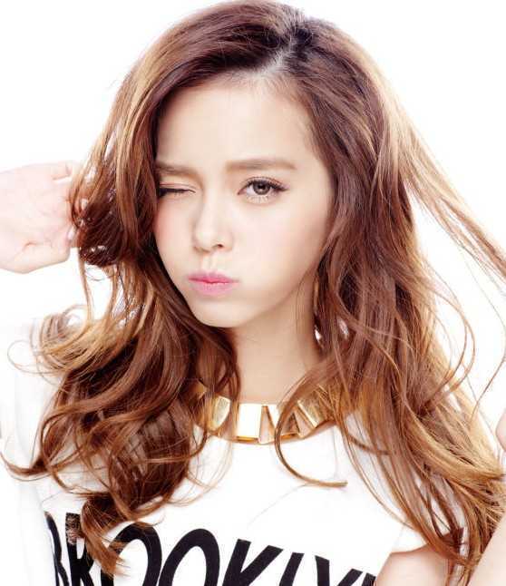 俏皮搞怪的韩国女生,顶着一款蓬松轻盈的长卷发型,给人格外的清新时尚感觉,大侧卷弧度的刘海完美呈现脸蛋效果,深棕的挑染发色衬托肤色又减龄!
