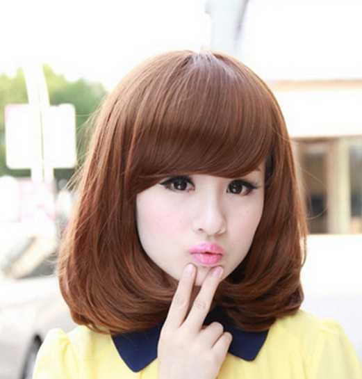 简单嘟嘴动作,十分的可爱动人,短发中来个内扣卷发弧度,很好修饰脸型又显得时尚好看,棕色发系显肤色,2014白皙又显俏皮。