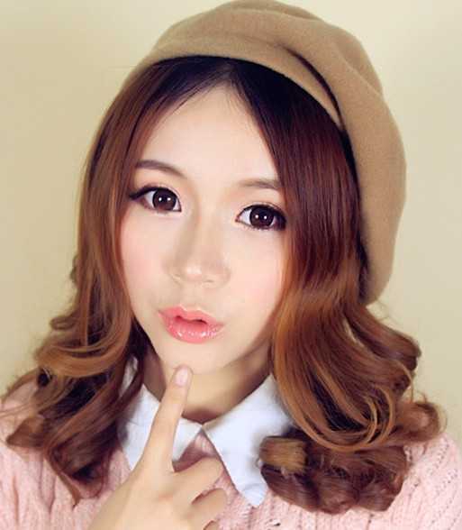 水嫩的妆容,几分诱人的魅力!中长的梨花卷发,活泼又显可爱,气质的中分刘海搭配小毛呢帽,又是一组女生最爱的潮流时尚搭配组合。