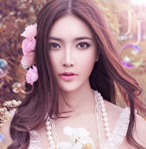 棕红的染发,时尚而透出优雅气息,飘逸感的长卷发束,几分的唯美感觉,精致的妆容,花朵的点缀,2014犹如迷人气质花仙子。