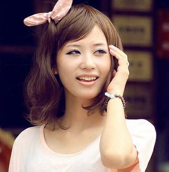 2014里修饰脸型超棒的一款短发卷发,韩式齐肩中长蓬松卷发,绝对是时尚大爱的女生发型,整体看起来甜美又不失优雅温柔感哦。