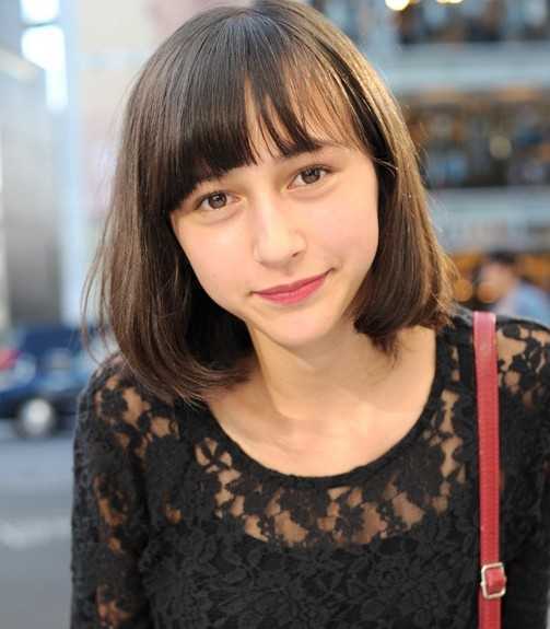 稀薄修剪的齐刘海,刚过眉毛的长度,有着几分呆萌可爱感,内卷短发的女生发型,搭配蕾丝上衣,甜美中还显露出几分知性韵味。