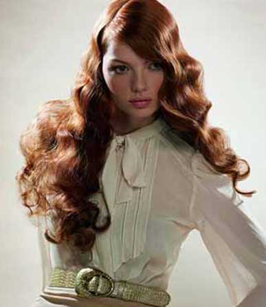 发型点评:这款欧美范的玉米烫长卷发发型,斜开的刘海以及散落肩上的两侧秀发,很好修饰了脸蛋,时尚的染发颜色更添美感。