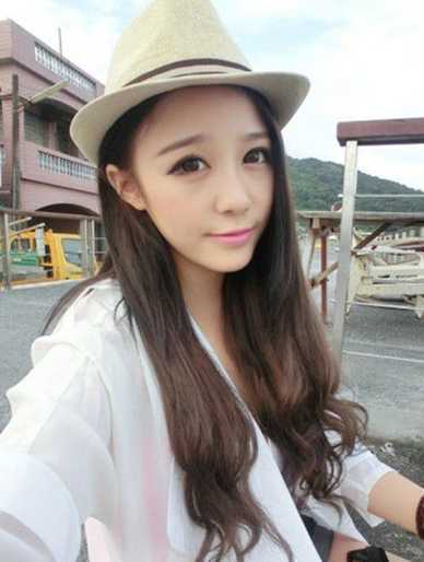 甜美、清纯的长卷发发型,中分的刘海,十分修颜减龄的长卷发,一边的头发挂在耳后,挺清爽的,头上戴上的一顶爵士帽,平添几分潮流。