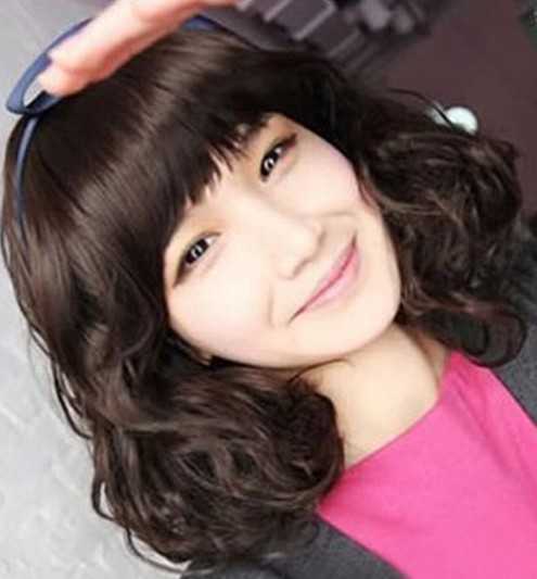 属于较甜美的一款女生蛋卷头发型,同样是齐肩修剪的头发,结合上动感的卷烫发,萌萌的齐刘海,甜美的笑容,迷人度十足!