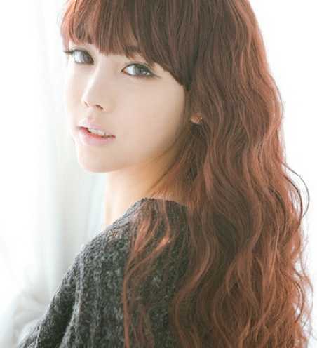 韩式的一款长发蛋卷头,有着轻盈感的蛋卷烫发,演绎出小女人的妩媚感,齐刘海稍作凌乱美感,淡淡的裸妆,足够时尚。