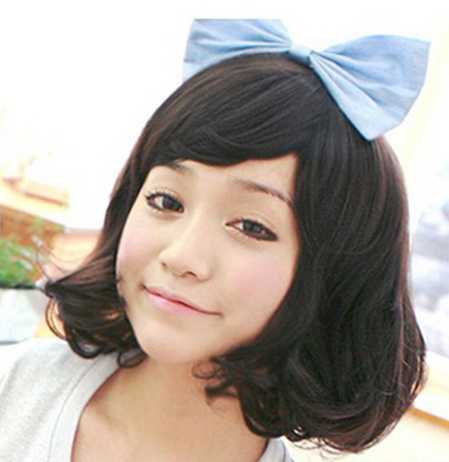 先来看看这款的女生短卷发吧,内扣蓬松的卷发造型设计,搭配甜美的蝴蝶结发饰后,让你化身为可爱萝莉范十足哦。