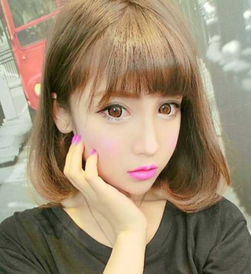 韩味十足的一款女生短发,内扣式的发尾卷发弧度,很是瘦脸和气质的效果,碎发修剪的齐刘海搭配粉嫩美妆,又是迷人清新。