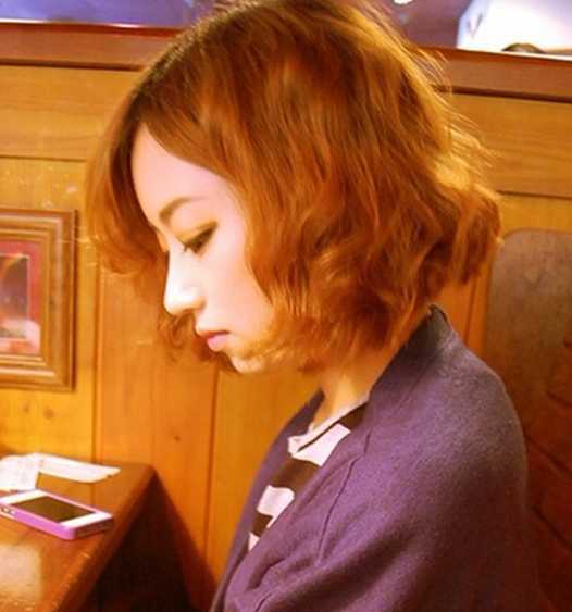 短发也可以很有女人味的哦,韩式短卷发清爽,搭配棕色染发,带来浓郁的女人味,很轻熟女的知性发型。