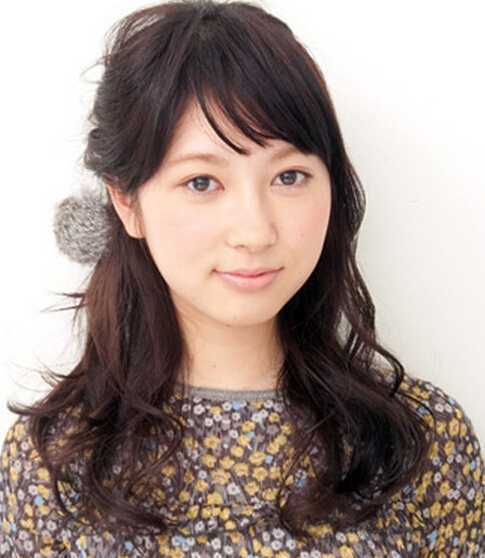 中长的女生卷发,松散扎起了半发设计,再点缀上毛球发饰,呈现的是几分的可爱,几分的优雅气质感。