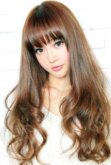 大波浪卷发和直发的搭配后,这样的女生发型给人恬静、清新的感觉。而碎发的齐刘海,无疑又是萌萌可爱女生的最佳法宝。