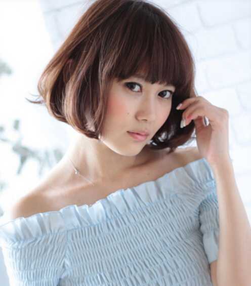 蓬松轻盈的荷叶头短发发型,内扣卷曲的头发,完美塑造小脸效果,整齐的刘海设计,是营造甜美动人的最佳法宝。