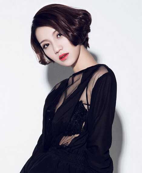 精致的红唇美妆,有着一股妩媚感,荷叶头设计的短卷发型,也很好彰显出自信气场,透视连衣裙装扮后,相当性感迷人。