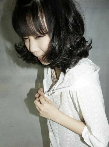 卷翘的荷叶头发型,彰显出女生的俏皮和可爱气息,稀薄的齐刘海头发,完美对脸型进行修颜效果,纯黑的发色,更是纯真又自然。