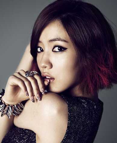 御姐范十足的一款韩式女生发型,蓬松的荷叶头卷发,极具个性时尚魅力,挑染的渐变红色头发,配个魅惑眼妆,十分妩媚动人。