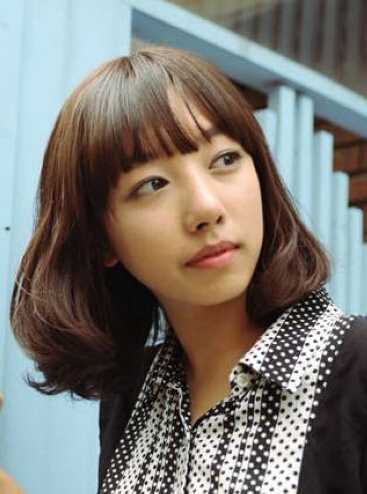 日系风的女生荷叶头发型,蓬松内扣的两侧卷发,修颜脸型正好,搭配稀薄的齐刘海头发,瞬间甜美减龄。