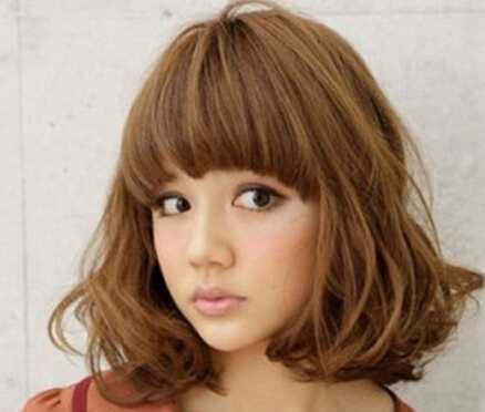 超蓬松设计的荷叶头发型,轻盈的卷发丝间很好透出优雅气息,圆弧形修剪的齐刘海搭配棕黄发色,相当清新有气质。
