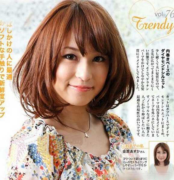 发型点评:这款韩式内卷短发很有可爱MM的妩媚感觉,三七分界的长刘海很能修饰脸型,加上发尾蓬松的烫发,更显出女生可爱又不失妩媚的感觉。